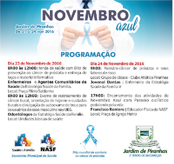 Ações da campanha Novembro Azul serão realizadas em Jardim de Piranhas na próxima semana.